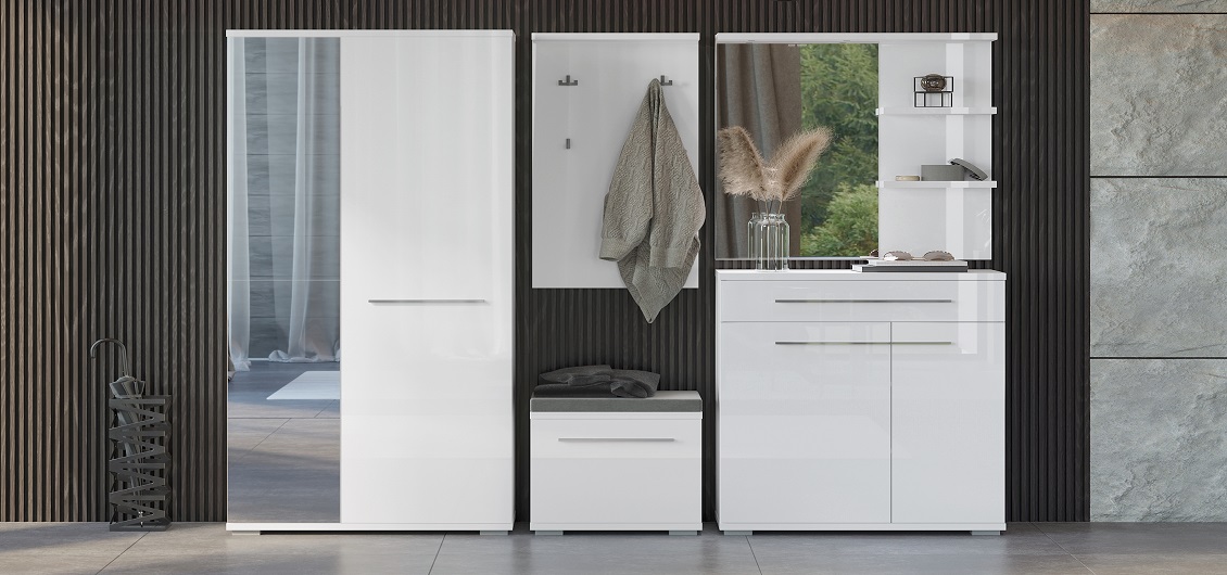 Tiek viendurės, tiek dvidurės batų spintos – funkcionalus sprendimas, padedantis palaikyti tvarką įėjimo erdvėje, tuo pačiu papildantis jos estetinę išvaizdą. Pakabinami stelažai su lentyna leidžia patogiai laikyti drabužius ir aksesuarus išlaikant tvarką.