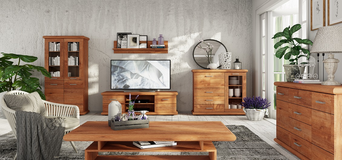 „Kora“ kolekcijoje yra įvairių elementų, leidžiančių visapusiškai įrengti svetainę. Daugiadurės ir kelių stalčių komodos, drabužių spintos ir vitrinos suteikia daug vietos daiktams laikyti, išlaikant elegantišką išvaizdą. Kavos staliukai ir suolai yra praktiški elementai ir erdvės židinio taškai, kuriuose galėsite susitikti atpalaiduojančioje atmosferoje. Televizorių spintelių sieninės lentynos leidžia eksponuoti multimedijos įrangą ar pasirinktus dekoratyvinius elementus. Kolekcija „Kora“ taip pat kreipia dėmesį į detales, siūlo eleganciją ir funkcionalumą.