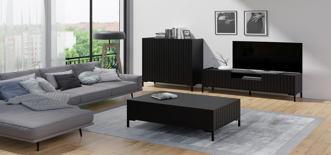 Matinis juodas dekoras sukuria elegantišką kolekcijos pagrindą, suteikia jai unikalų charakterį. Tiek baldų fasadai, tiek korpusai yra apdailinti matiniu stiliumi, kuris pabrėžia modernią ir santūrią visos kolekcijos išvaizdą.