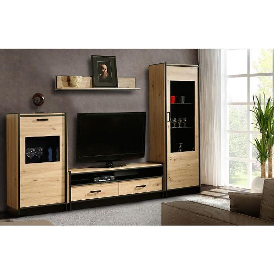Šviesus medžio faktūros dažymas artisan ąžuolo atspalviu ir matinė apdaila suteikia vitrinai unikalumo. Dėl šio derinio ji puikiai dera prie modernaus interjero dizaino, suteikdama jam šilumos ir natūralaus žavesio.