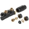 Radiatorių jungtys (½), skirtos 15 mm vario ir 16 mm PEX instaliacijai: Šį rinkinį sudaro jungtys, leidžiančios lengvai ir efektyviai prijungti radiatorių prie įrenginių su 15 mm variniais vamzdžiais arba 16 mm PEX vamzdžiais. Tai praktiškas sprendimas, didinantis rinkinio universalumą ir leidžiantis jį pritaikyti įvairioms šildymo sistemoms.