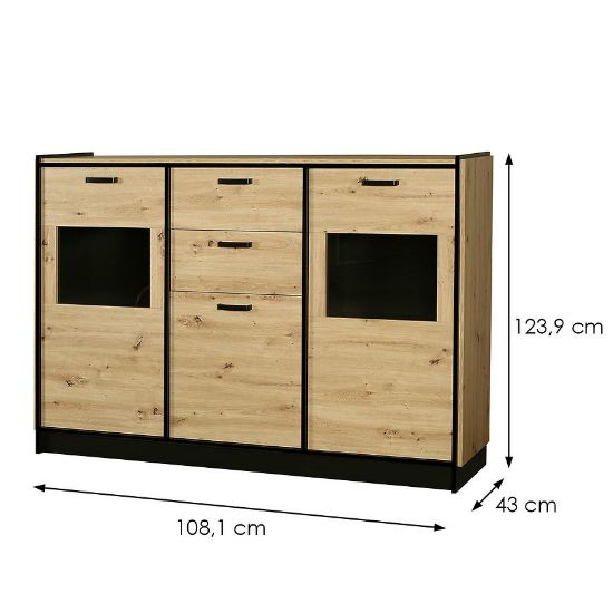 Unikalus dizainas pagrįstas medieną primenančia ąžuolo artisan atspalvio spalva su juodos spalvos elementais, kurie suteikia baldui elegantiškumo ir modernumo. Matinė apdaila ne tik pabrėžia baldo estetiką, bet ir užtikrina jo ilgaamžiškumą bei atsparumą pažeidimams.