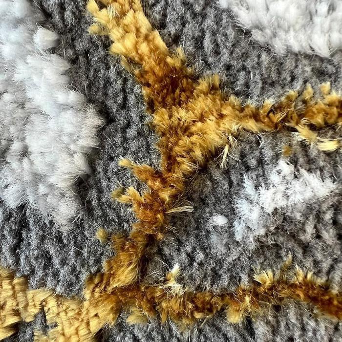 Kilimas pagamintas iš 70 % polipropileno ir 30 % poliesterio. atsparus pelėsiui, bakterijoms, drėgmei ir cheminėms medžiagoms. Jis malonus liesti ir labai efektingai atrodo interjeruose! Dėl savo spalvinės gamos jis derės prie daugumos interjero detalių.