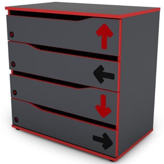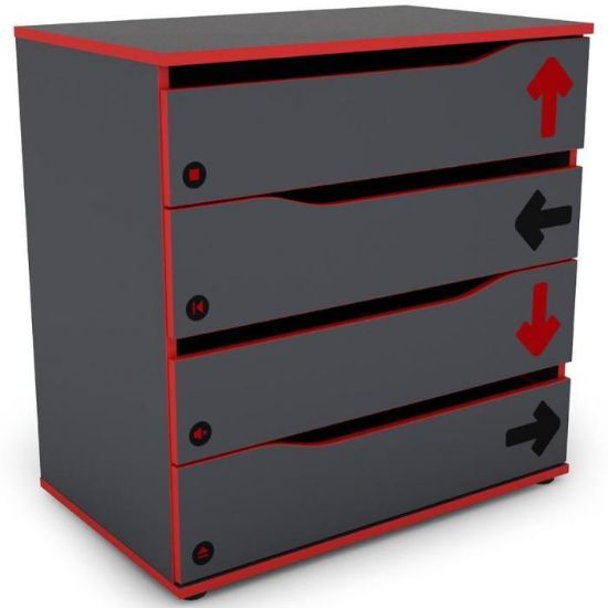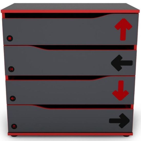 Grafito/raudonos spalvos "Matrix" komoda - tai visų pirma modernumas ir funkcionalumas viename. Baldas puikiai tiks bet kokiam jaunimo kambariui. Gamybos medžiaga - laminuota medžio drožlių plokštė. Komoda turi keturis stalčius, kurių dėka lengvai pasiekiamas vidus. Baldo išvaizda yra moderni ir kartu universali. Baldas skirtas surinkti savarankiškai.