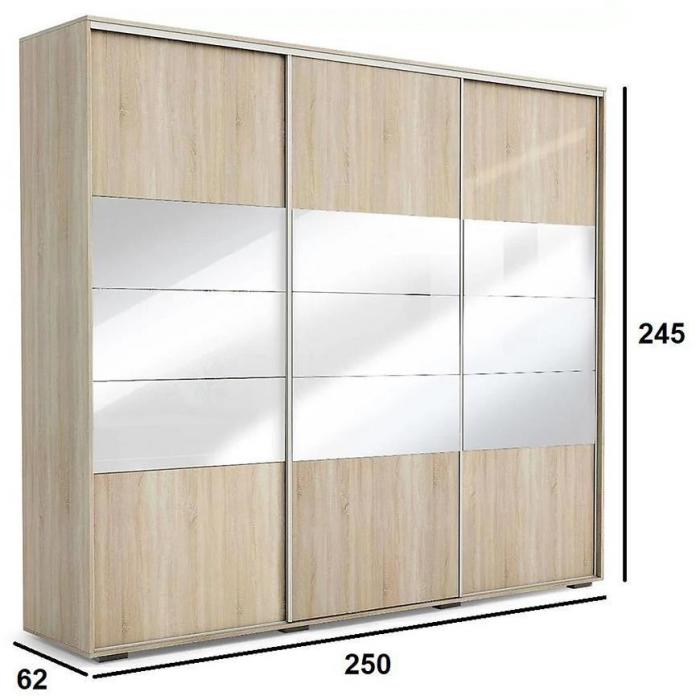 Milena ąžuolo sonoma spalvos spinta iš Milena kolekcijos yra puikus pasiūlymas svetainei, tačiau ji ras savo vietą ir kitose patalpose, pavyzdžiui, prieškambaryje ar drabužinėje, miegamajame. Gamybos medžiaga - laminuota plokštė. Spinta turi lentynas ir drabužių kabyklą. Didelė spinta taip pat turi veidrodį, kuris optiškai padidins patalpą. Spinta bus puiki vieta drabužiams, batams ar kitai namų tekstilei pakabinti. Modernaus stiliaus baldai patiks visiems, ieškantiems elegantiškų, klasikinių, tačiau šiuolaikiškų baldų. Ji puikiai derės prie daugumos aranžuočių. Spinta skirta surinkti patiems. Už papildomą mokestį galima įsigyti spintos pjedestalą su stalčiais.