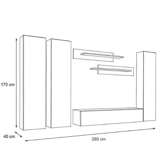 "Fly" sieninė spintelė yra puikus sprendimas mažiems ir ne tik kambariams. Televizoriaus spintelė, vitrinos ir lentynos sudaro sieninį bloką. Blizgūs baldų frontai suteiks jūsų svetainei modernią ir elegantišką išvaizdą.