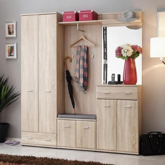 Spinta"Amario I sonoma " yra idealus sprendimas prieškambariui. Sistemą sudaro siauras stovas, spinta, spintelė su sėdyne ir pakabinamas skydas.